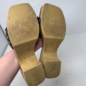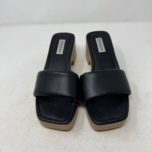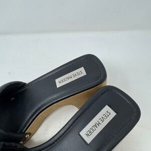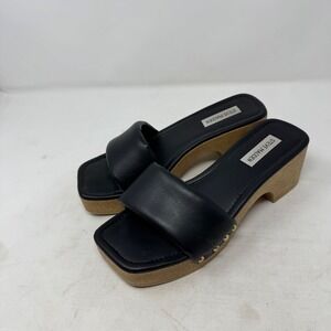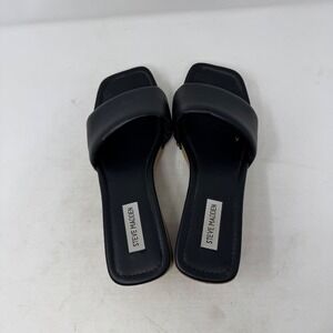 Steve Madden Black Leather Padded Square Toe Platform Slide Sandals Size 8