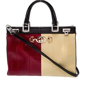 100% authentic Gucci Python Colorblock Horsebit GG Zumi Shoulder Bag