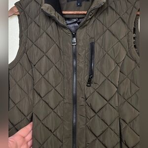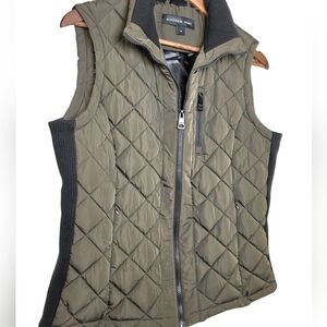 Andrew Marc Quilted Puffer Vest Full Zip – Earthy Khaki Green – Size M