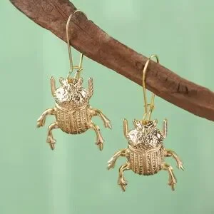 Elegant gold beetle earrings perfect for adding a unique touch to any outfit. Crafted with attention to detail, these earrings are a standout accessory.