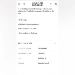 & Other Stories Pleated Wide Leg Trouser Jeans Size 12