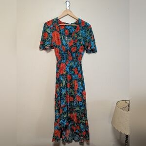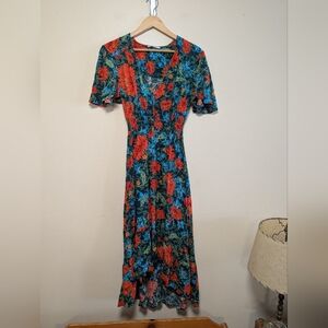 Abel the Label Floral High-Low Midi Dress Small Blue Orange