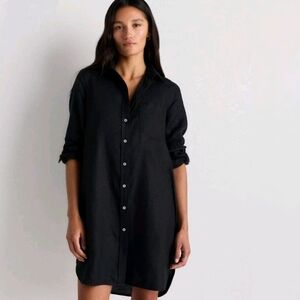 Quince European Linen Long Sleeve Shirt Dress L Black
