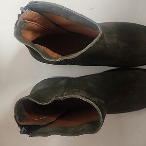 Step out in style with these chic distressed olive suede ankle boots with side zipper. Perfect for any occasion, they offer both comfort and elegance. If you know Frye you know it's quality! Size 8B. Pre-owned but barely worn. See all pictures. Can dress up or down. Retail $425