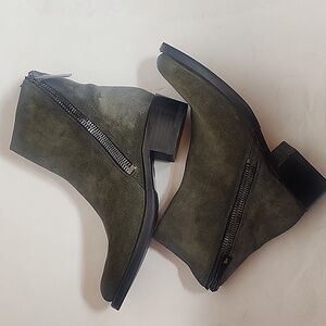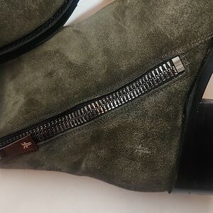 Frye Distressed Gorgeous Olive Suede Side Zip Ankle Quality Bootie Boots Size 8B