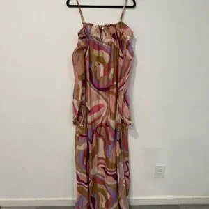 Joyce & Girls Coconut Cotton Silk Off The Shoulder Long Sleeve Maxi Dress M