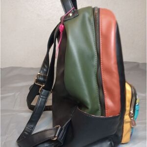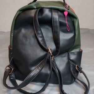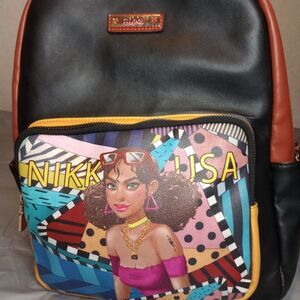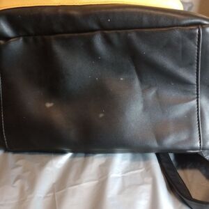 This is a great bag for on the go! Lots of room! This is in used condition. There is a slight hole/rip on the front pouch on the left top side as pictured. There are markings on the bottom as pictured.