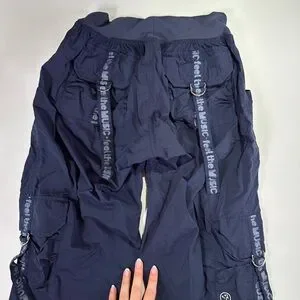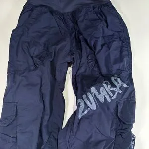 Stylish navy track pants. Features Zumba logo. Comfortable fit.