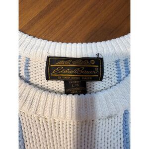 VTG 90’s Eddie Bauer Sweater Women Large White Floral Roses Chunky Knit Crewneck