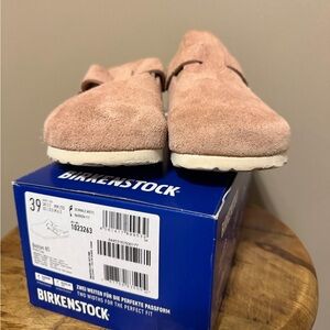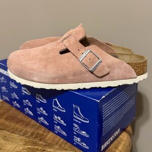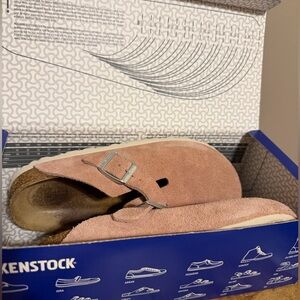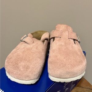 Birkenstock Boston Clay Pink Suede Slip-On Clogs, Size 39