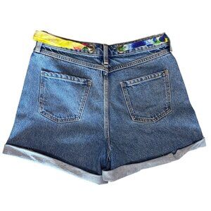 Sample One Of A Kind Embroidered Denim Shorts Grommet Scarf Belt 14” Waist New