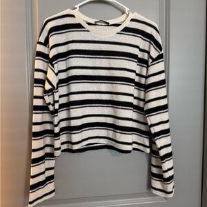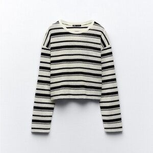 Zara Black and White Striped Long Sleeve Top