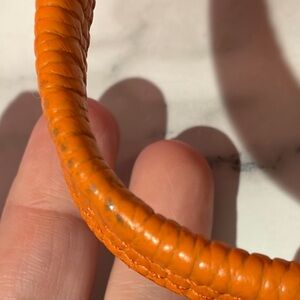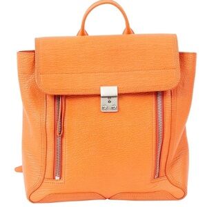 Stylish and vibrant bright orange leather backpack perfect for everyday use. Features a sleek design with secure zip closures. Lightly used with normal minimal usage is present within the interior. Please reflect on all photos.