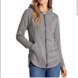 Eddie Bauer Eddie Bauer Radiator 2.0 Fleece Jacket. Full Zip. Close-knit sweater-like exterior. Soft, cozy, brushed fleece interior. Open entry front pockets. Clean seam lines create a polished form fitting look. Polyester knit offers excellent warmth without bulk or weight. Hooded. 100% Polyester.