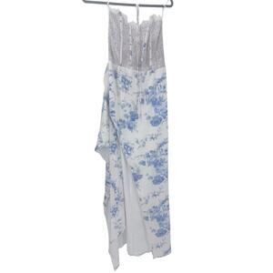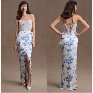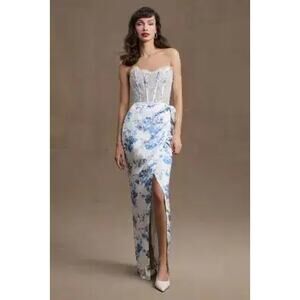 V. Chapman Wrap-Skirt Lace-Corset Front-Slit Column Gown Blue Size 10 NWOT