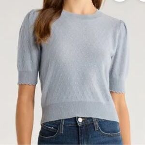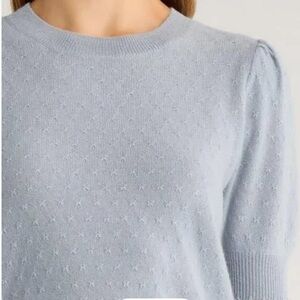 FRAME Pointelle Puff Sleeves Cashmere Sweater Pullover. 100% Cashmere.