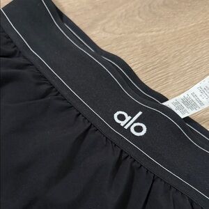 Chic and versatile mini skirt by ALO Yoga. Features a sleek black design. Ideal for casual or active wear.