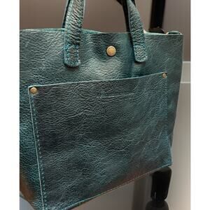Portland Leather Almost Perfect Mini Crossbody Tote Blue Green