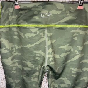 Brand new Vineyard Vines performance leggings in a green camo print with bright neon yellow contrast stitching. High-rise waistband with stretch compression fit. Moisture-wicking, squat-proof fabric—great for gym, yoga, running, and athleisure.