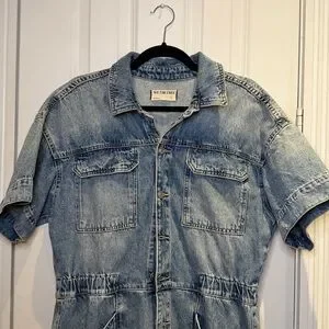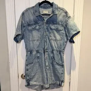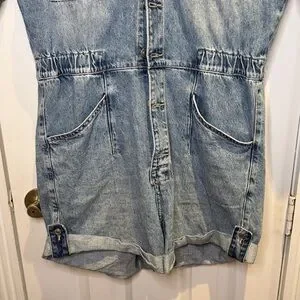 Free People Marci Denim Cuffed Short Romper in Large