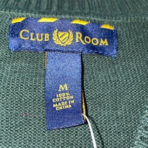 Club Room Dark Green V-Neck Sweater Vest 100% Cotton Medium