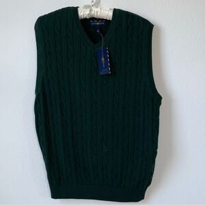 Club Room Dark Green V-Neck Sweater Vest 100% Cotton