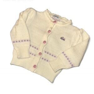 Lacoste Baby Vintage Ivory Knit Cardigan with Lavender Detail M Cottagecore