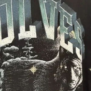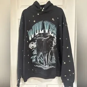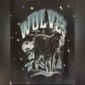 Stay warm and stylish with this black Wolves graphic hoodie. Perfect for casual outings, this sweater features a bold wolf design that stands out.