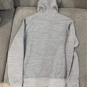 Classic zip-up sweater with a hood. Features a subtle logo detail. Ideal for layering.