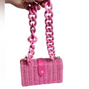 Pink straw purse, wear with plastic tortoise-shell style strap, long thin adjustable faux leather straps, or as a clutch. Magnetic strap closure. Never worn, NWOT