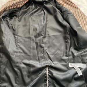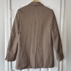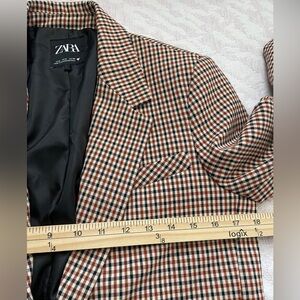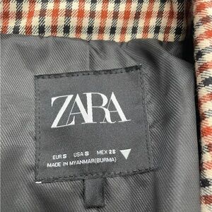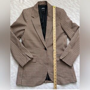 Stylish plaid blazer by Zara. Features a beige and black design. Ideal for a polished look.