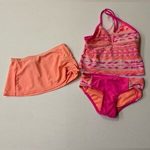 Girls 5/6 ZeroXposur 3 Piece Tankini Set - Pink and Orange