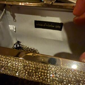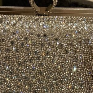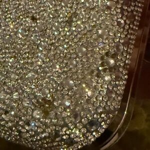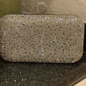 The front of this gorgeous hard shell clutch is encrusted with crystals that shine & sparkle with every move.