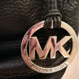Stylish Michael Kors black bucket bag with silver chain and emblem. In great used condition. No signs of real wear, one small mark on the strap. Inside and outside clean.