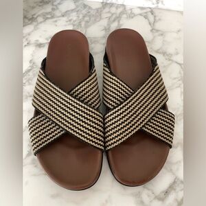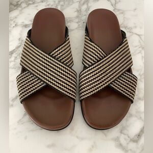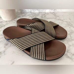 Rothy's The Weekend Slide Sandals Toffee Stripe Size 11