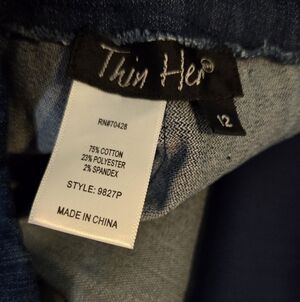 Thin Her Women's Pull On Stretch Elastic Waistband Denim Ankle Pant, Size 12. Gently used.