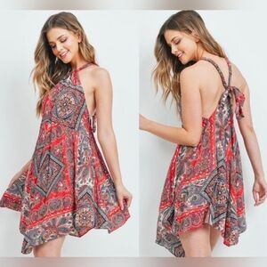 Bohemian Halter Cross Back Tie Asymmetrical Spring Summer Dress