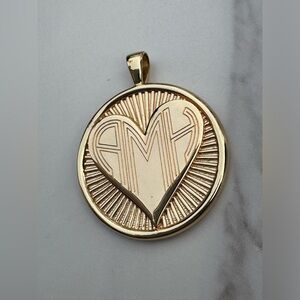 JANE WIN Love Hearts Find Me Pendant Engraved 14k GP Gold Charm