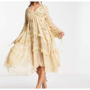 ASOS DESIGN a-line midi dress Womens 12 cluster embellishment in gold
