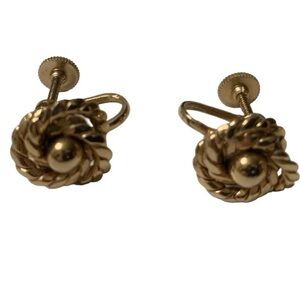 EARRINGS Gold Tone Rope Coiled Love Knot Earrings, Twist on, Vintage Jewelry