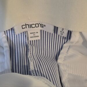 Chico's Women's So Slimming Blue And White Pinstriped Ankle Pant, Size 12. Gently used.
