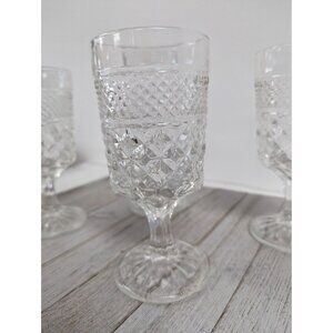 Set 4 Wexford Anchor Hocking Glass Water Goblets 6 5/8" Diamond Cut Stemmed
