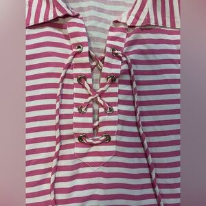 Stella Parker Pink and White Striped Lace-Up Blouse