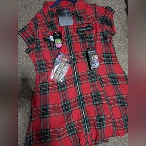 u will get cute plaid dress sz ex lrg/2x , also a white over shirt sz ex lrg /2x , dollskill skull necklace, Astroworld air freshener, villain bath&body hand sanitizer holder with refill, and last but not least hot topic butterfly press on nails
