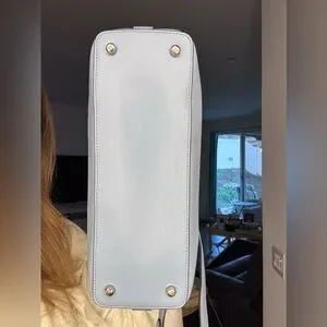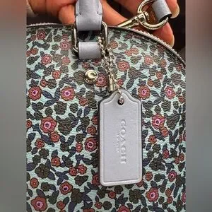 Zip-top closure, fabric lining, inside zip and multifunction pockets, dual rolled handles with a 3 1/2" drop, and a detachable strap for shoulder or crossbody wear.