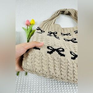 Keywords: zenana bag, knit tote bag, bow tote bag, coquette bag, shoulder tote, chic tote, neutral tote bag, black bow bag, everyday tote, soft girl aesthetic, balletcore bag, parisian style, women tote bag, boutique bag