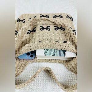 NEW Zenana Bow Knit Tote Bag Tan Black Coquette Chic Shoulder Bag