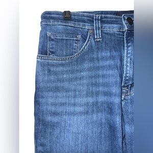 Soft and stretchy, the fabric is a midweight pant designed for optimal comfort and movement. The denim is doublewashed to resist fading and enhanced with luxurious stretch.