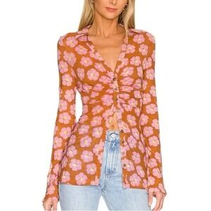 Free People Lucky Shirtee Floral Blouse Top Sz XS Long Sleeve Button Up Boho