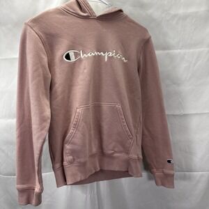 Champion Girls Rose Pink Long Sleeve Graphic Logo Hoodie Size Large